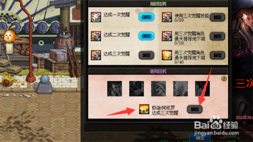 然后打开的界面,领取【级诣.阿修罗达到三醒觉】礼包,在里面可以获得100级传说装备。