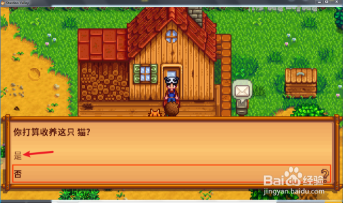 然后玛妮挽劝您收养这只猫,您选择【是】。