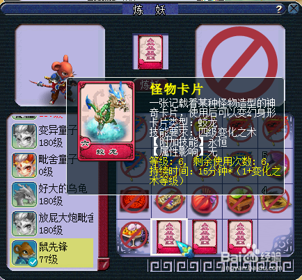 和变身卡,也算是比力冷门的体例吧,我喜好把6级卡合当作七级鼠前锋卡,六级卡片我们区8-9万可以买到,合当作一次大要28000梦幻币,当作本11万多,出鼠前锋卡的话可以卖30多点,有时辰会出废卡,从概率上来说稳赚,只是赚多赚少的问题了。建议大师弄几张尝尝概率。