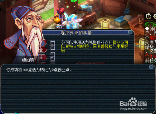 这里我用100活力做了试验,点击选择转化100获利之后会弹出“您当作功将100点活力转化为2点求学点。”这就暗示我们已经完当作了求学点的获取操作。