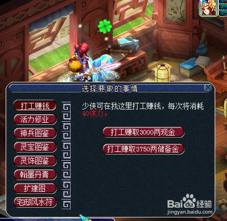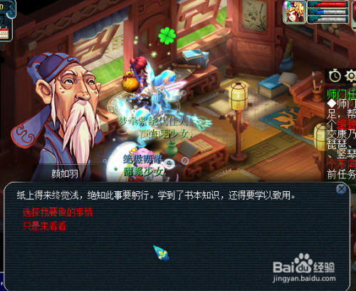 开好本身的账号,跑到书店,因为我有书店门口的旗子所以我习惯跑来书店。点击颜如羽,选择我要做的工作。