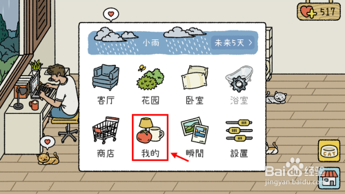 佛系游戏都以收集为乐趣,这条目也不破例,点击菜单键然后选择“我的”。