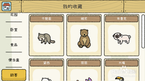 左侧标签点击“访客”,就能看到已经到访过的小动物,只有到访过的小动物才能呈现在图鉴中,赶紧加油收集起来吧。