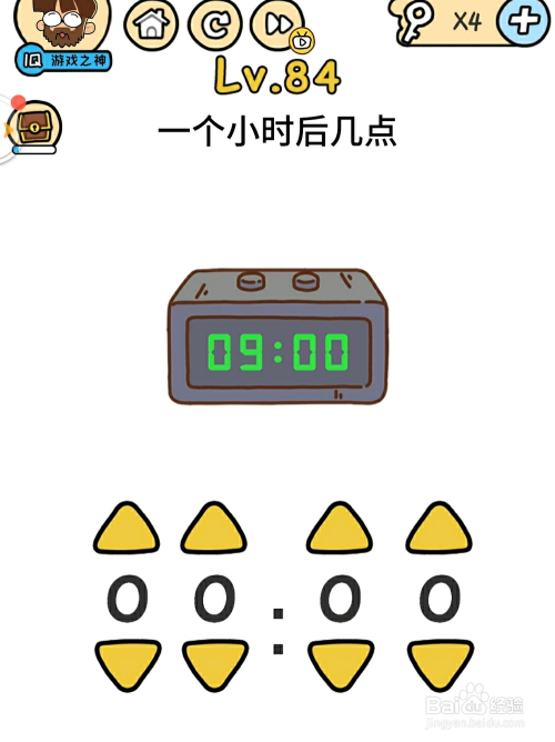 成果如下图所示,时候一向不会变,输入9点即可过关。