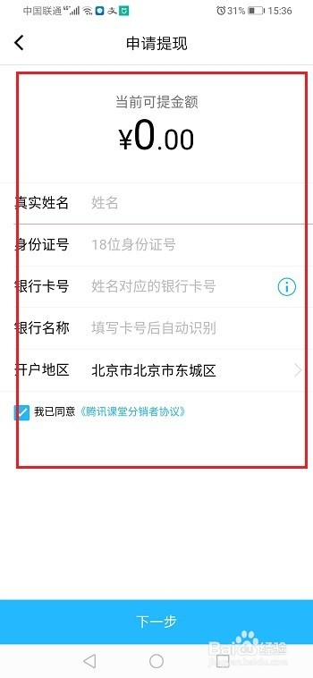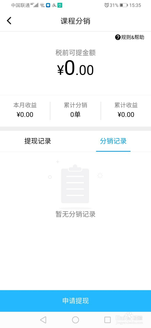 第五步若是我们有课程分销获得的奖励,也可以进行提现,如下图所示: