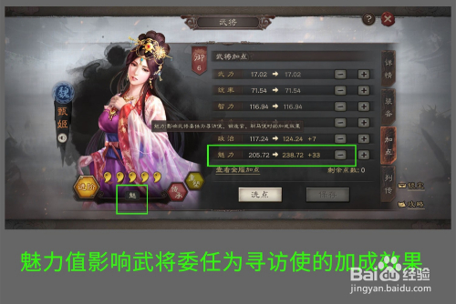 因为寻访使的寻访结果受武将自身所带魅力属性影响,是以作为魅力值高的甄姬,很适合此委任,能提高寻访的加当作结果。