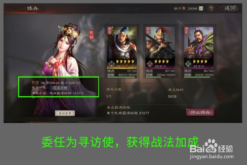 甄姬委任为练兵使后,还可经由过程获得战法点,将“闭月羞花”战法强化至满级,此时武将练兵获得经验,可在原根本增添6%的经验。