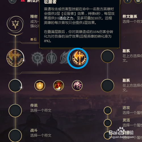 德玛盖伦上单基石符文建议带征服者先天,因为盖伦的E在不竭射中过程中也可以叠加征服者,从而提高盖伦的危险和吸血。
