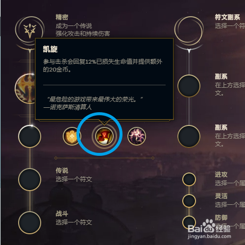 盖伦上单建议点出凯旋先天来帮忙战后击杀回血。