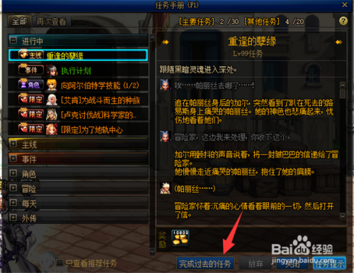 若是本家儿线使命没完当作,点击一个本家儿线使命,下面点击【完当作曩昔的使命】按钮。