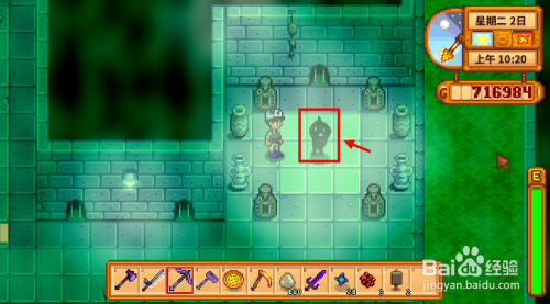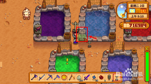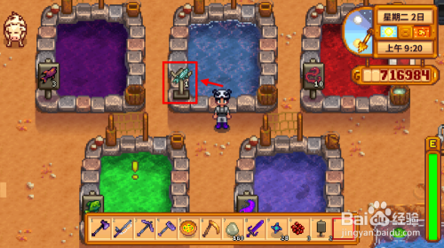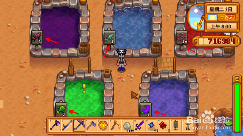 4、船标第2个感化是指示鱼塘,先拿起背包中的船标然后点击鱼塘墙壁。