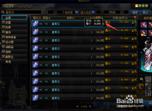 4、打开拍卖行搜刮“堇青石”可见,单个价钱依然有1.6万金币,满委靡刷20次。