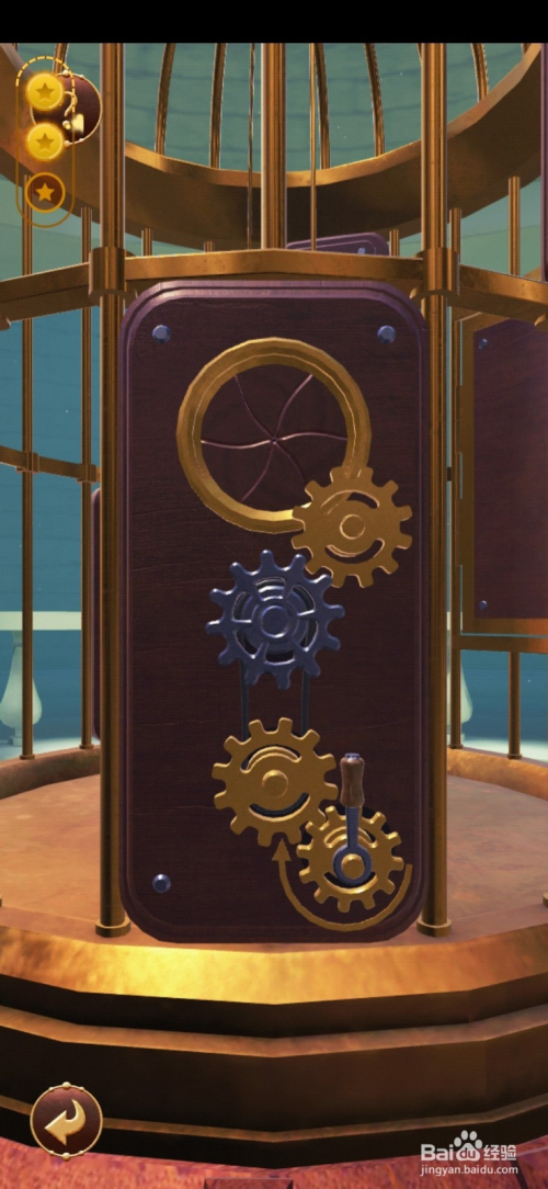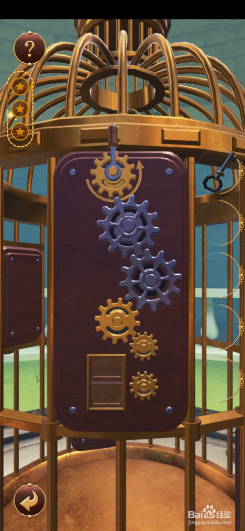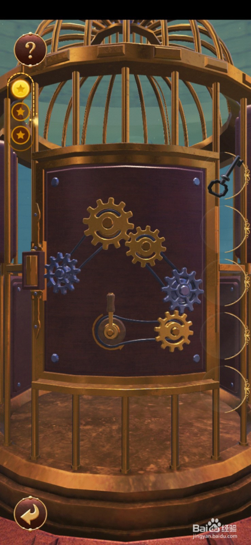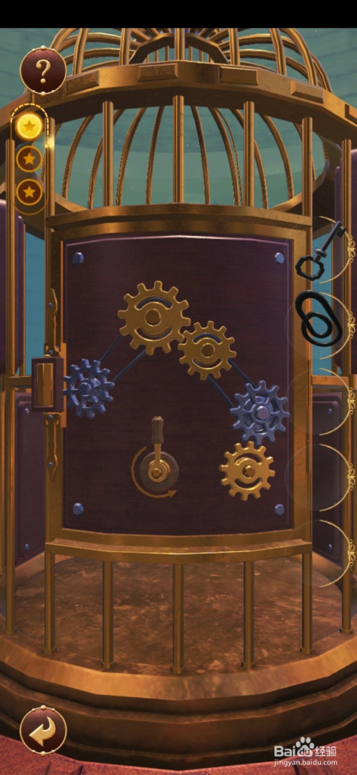 去到下图,将两个齿轮安上,动弹把手,获得一把钥匙。把两个齿轮拿下来。