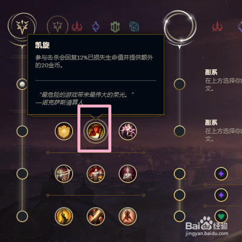 点出【凯旋】先天帮忙女刀锋在战后回血。