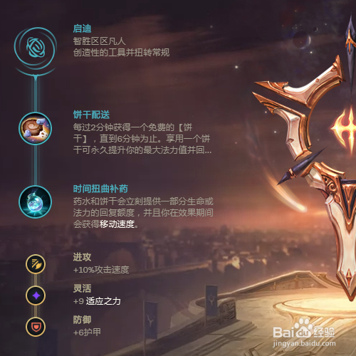 女刀副系可以点出启迪系的【饼干】先天和【时候扭曲补药】先天来帮忙答复状况。女刀属性点出攻速、进犯力和护甲。