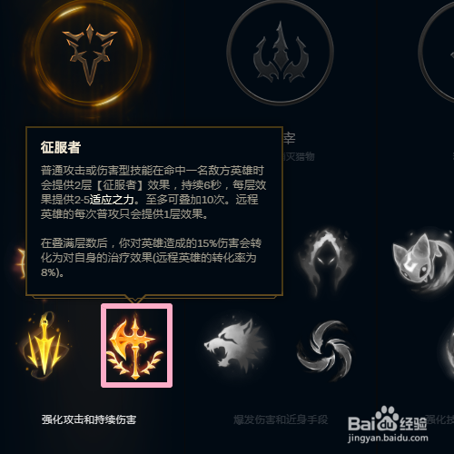 女刀的基石符文建议点出紧密系【征服者】符文。
