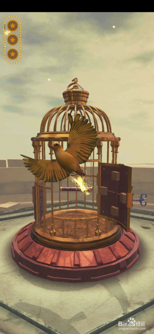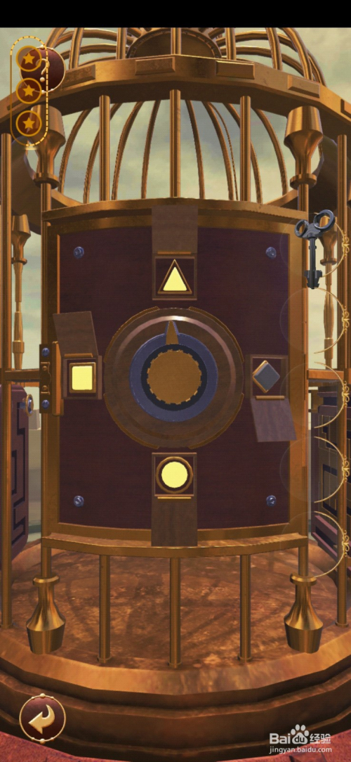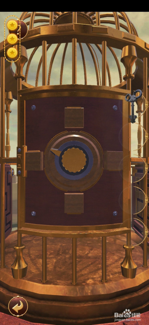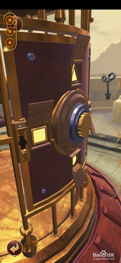 将钥匙插入开启的锁孔,动弹钥匙,打开门过关。