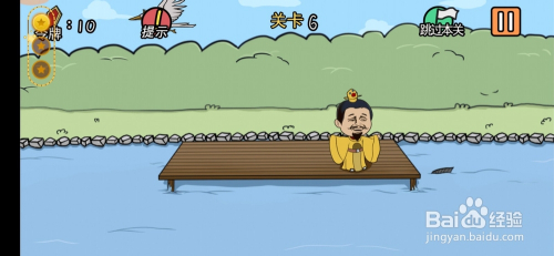 第6关,把手机竖起来,皇上失落进水里,过关。