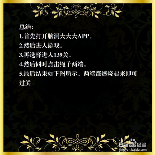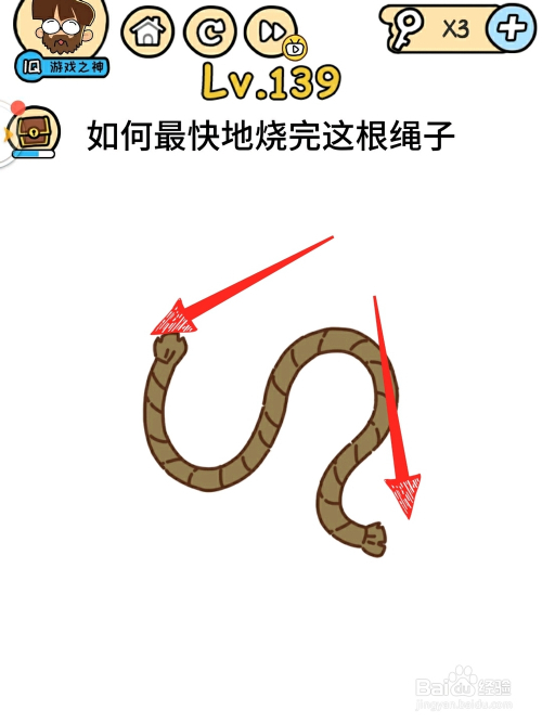 5.最后成果如下图所示,两头都燃烧起来即可过关。