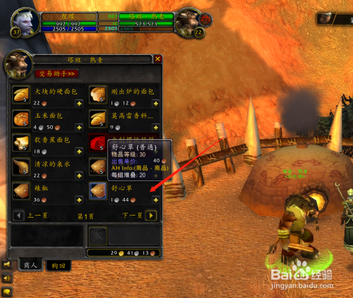 和“塔班·熟麦”(坐标55,32)对话,并采办舒心草,需要几多采办几多。