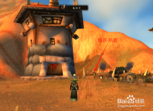 按地图标识表记标帜,在贫瘠之地四周的一处房子旁边找到“塔班·熟麦”(坐标55,32)。