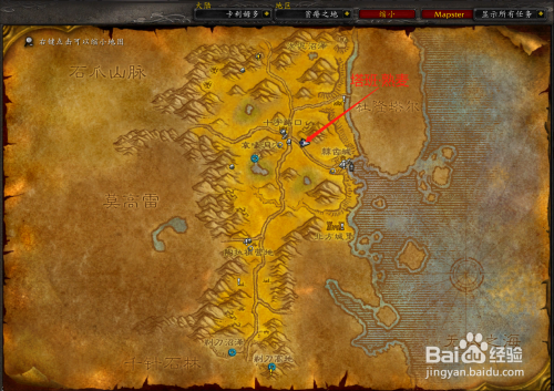 “塔班·熟麦”位于贫瘠之地十字路口四周,具体位置如图所示。