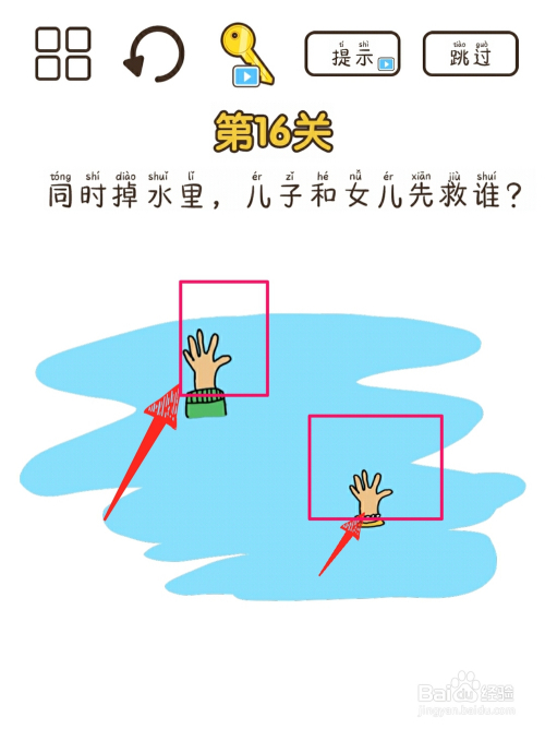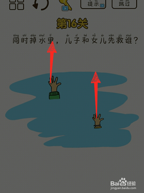 5.最后如下图所示,同时标的目的上移动即可过关。