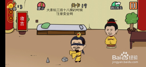 第18关,把皇上拖到蹦床上,快速点击蹦床,过关。
