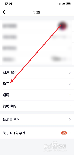3、点击【隐私】