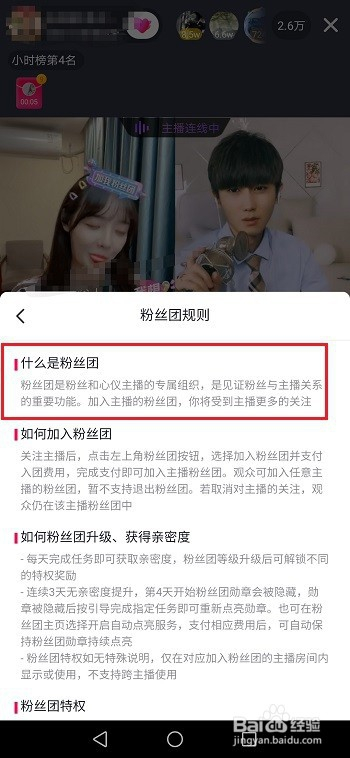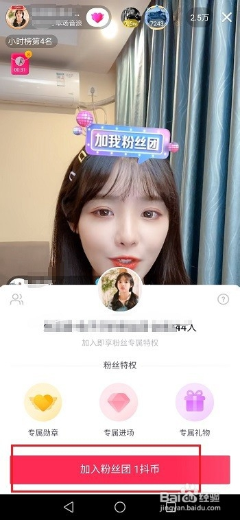 第四步点击之后,选择插手粉丝团,如下图所示: