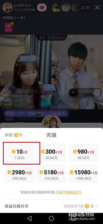 第五步插手粉丝团需要1抖币,可以充值后再插手,按照需要选择,如下图所示: