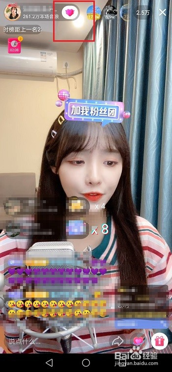第三步进去直播间之后,点击粉丝团图标,如下图所示: