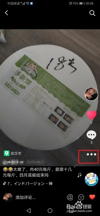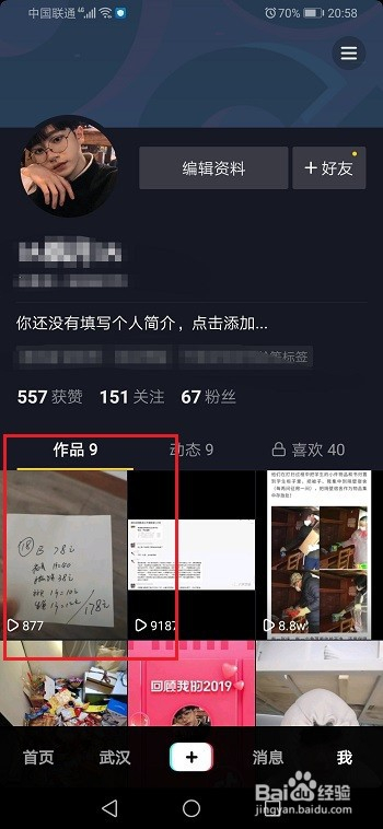 第一步手机上打开抖音,进去小我本家儿页,点击要打消置顶的视频,如下图所示: