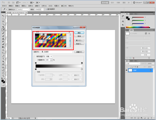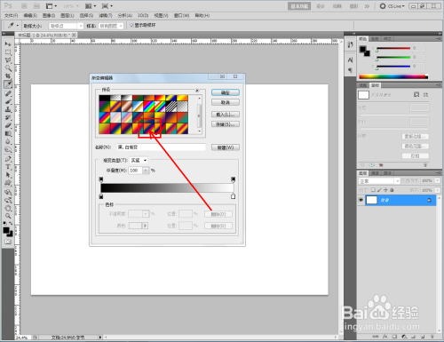 点击【渐变东西】-【线性渐变】,点按【可编纂渐变条】,弹出渐变编纂器;