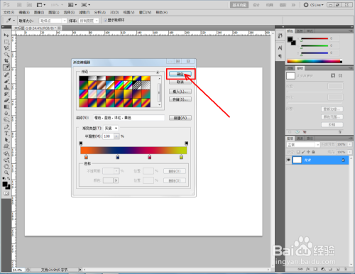 选择【橙-蓝-洋红-黄】渐变后,点击【确定】;