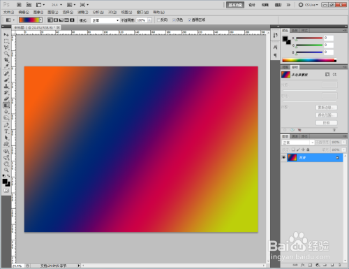 最后,点击鼠标左键,拉出橙-蓝-洋红-黄线性渐变结果即可。