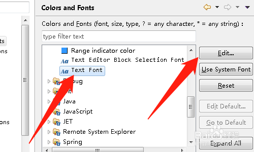 然后点击【Text Font】,点击【Edit】按钮,如下图所示。