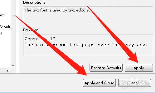 然后点击【Apply】按钮,点击【Apply and Close】按钮,如下图所示。