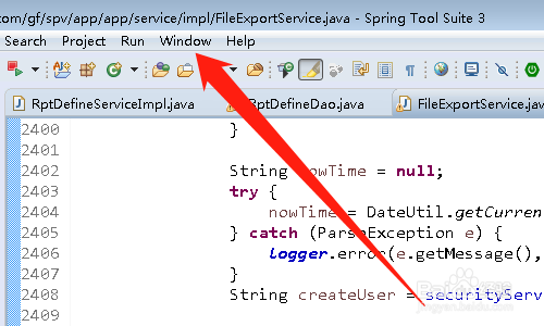 首先打开【eclipse】软件,点击【Window】,如下图所示。