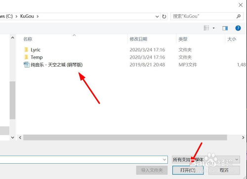 选择需要的音乐素材,点击“打开”。