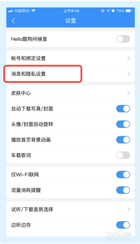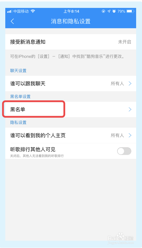 5.点击【黑名单】,然后即可查看酷狗音乐app的黑名单。