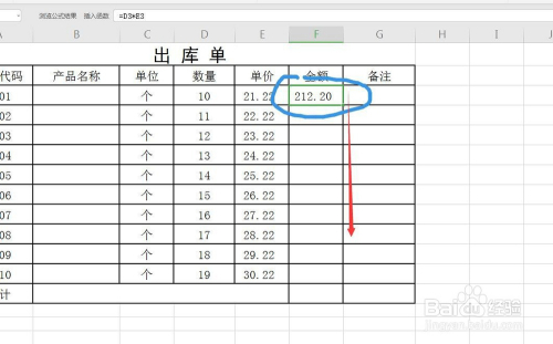 点击确定之后,金额主动计较出来,将鼠标放在这个单位格的右下角,标的目的下拖动到这个项的末从头至尾,那么金额就都计较出来了