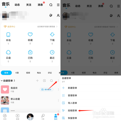 填写完信息,点击“投稿”就算完当作啦,接着就等审核经由过程啦。在我的页面,点击自建歌单最右侧的图标,会呈现一个小菜单,找到“投稿歌单”,点击进入,在这里面您就能看到投稿歌单的审核成果了。
