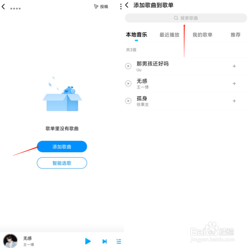 建好歌单后,在歌单中心有“添加歌曲”,点击进入。里面包罗了当地音乐、比来播放等等,找到您想要的歌曲,点击一下就能完当作添加,上方还有搜索框,便利添加您想要的歌曲。