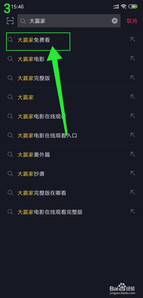 然后搜刮出大赢家片子,点击“大赢家免费看”;