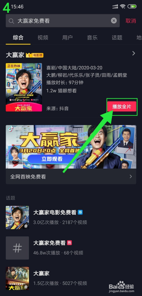 4、搜到大赢家,点击播放全片;