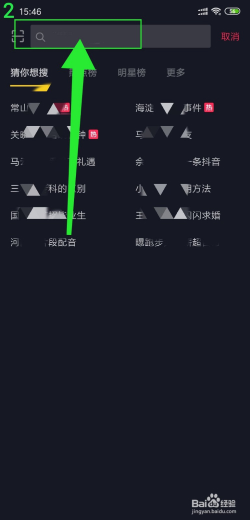 打开抖音之后,点击右上角的搜刮图标;