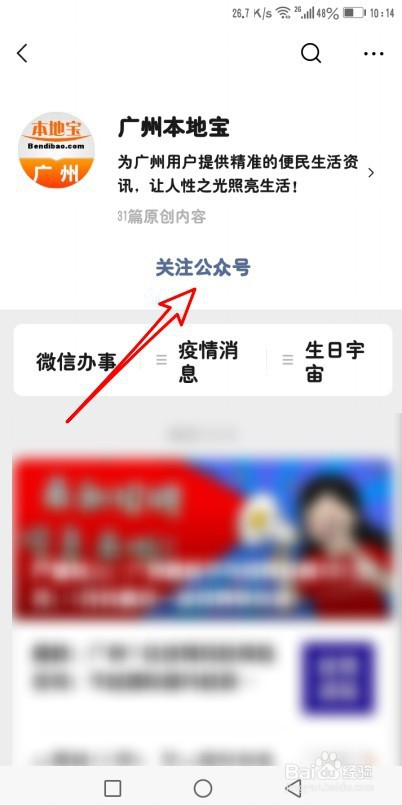 然后再打开的页面,点击存眷公家号的快捷链接。