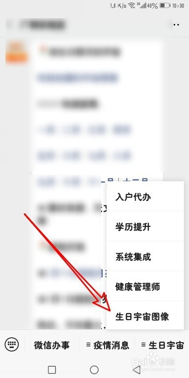5、在弹出的菜单中点击生日宇宙图像的菜单项。