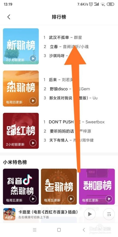 5.如图所示,在这个免费下载榜中,我们可以免费的下载歌曲,可是这里的歌曲每周五城市更新,所以我们也纷歧定能找到,我们需要下载那一首歌,可是我感觉已经很好了。在此我们感激小米手机,为我们爱听音乐的屌丝党带来的这个音乐福利。